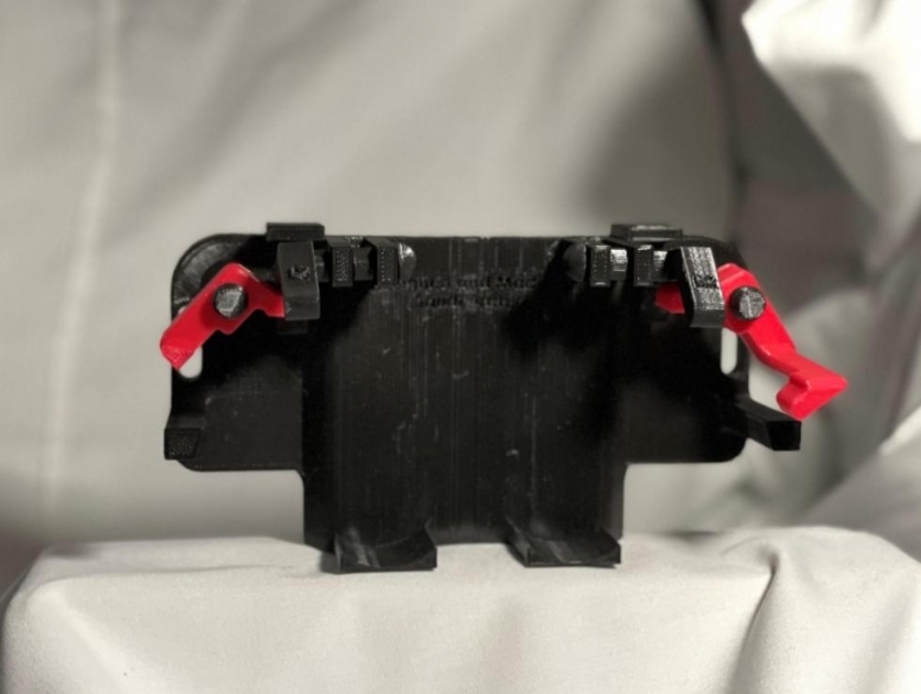 وتتكون أداة الـدعم من قـالب يعمـل كقـاعـدة لتثبيت وحدة التحكم، يشتمل القالب على حاجزين أمـاميين وحـاجزين جـانبيين،يتم من خلالهما تثبيت وحدة التحكم، وتضم أداة الـدعم أربعـة مقـابض يجري من خلال دفعهم الضغط على الأزرار الخلفية لوحـدة التحكم، ويوجد في القالب كـذلك فتحتان جانبيتان تثبيت خلالهما أداة دعم وحـدة التحكم من خلال أربطة عريضـة مرنـة ، تُمرَّر من الفتحتين وربطهمـا على رجلي المريض، أو يد الكرسي المتحرك الخاص به.