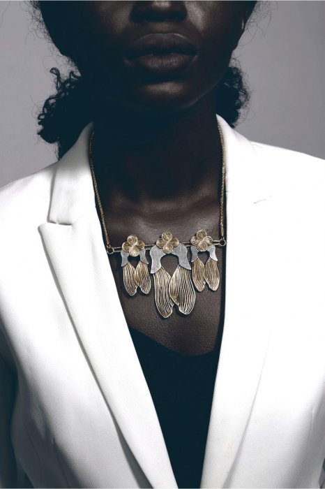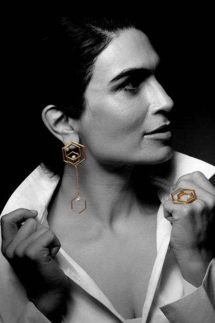 و تشتمل المجموعة على عقود وقلادات وأقراط وأساور مصنوعة من مواد عالية الجودة لا تسبب الحساسية ومطلية بالذهب عيار 18 قيراطًا، ومزينة بأحجار أو بلورات طبيعية أو أحجارشبه كريمة.