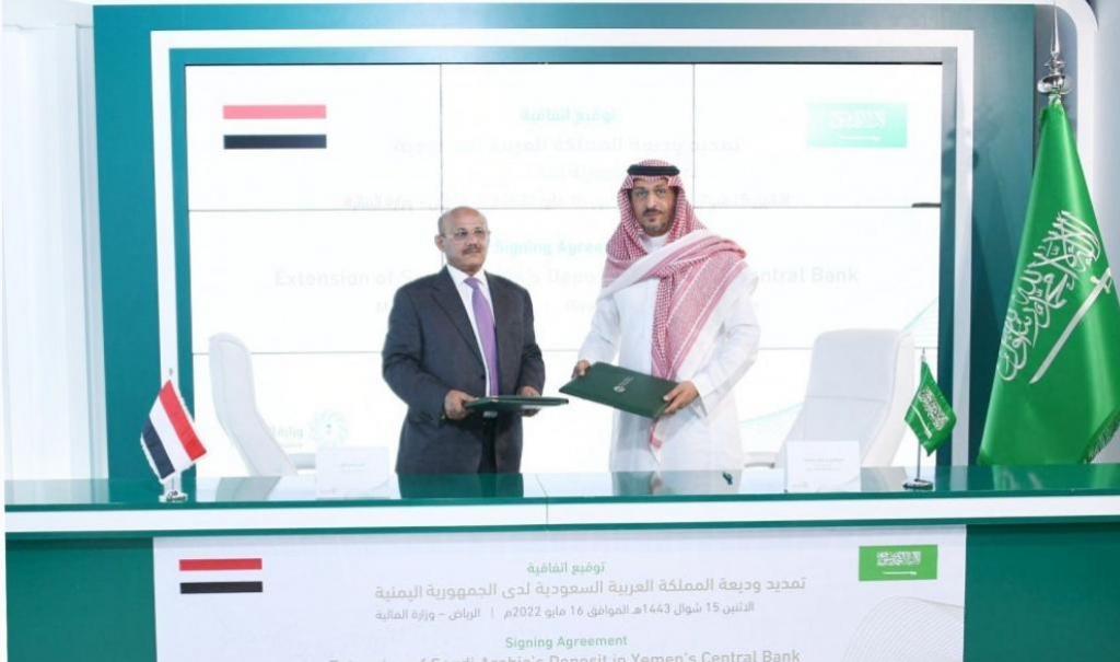 وقع سعادة مساعد وزير المالية للسياسات المالية الكلية والعلاقات الدولية الأستاذ/ عبدالعزيز بن متعب الرشيد، ومعالي محافظ البنك المركزي اليمني أحمد بن أحمد غالب، بالرياض اتفاقية تمديد فترة الإيداع للوديعة التي سبق إيداعها عام 2018م لدى البنك المركزي اليمني.
