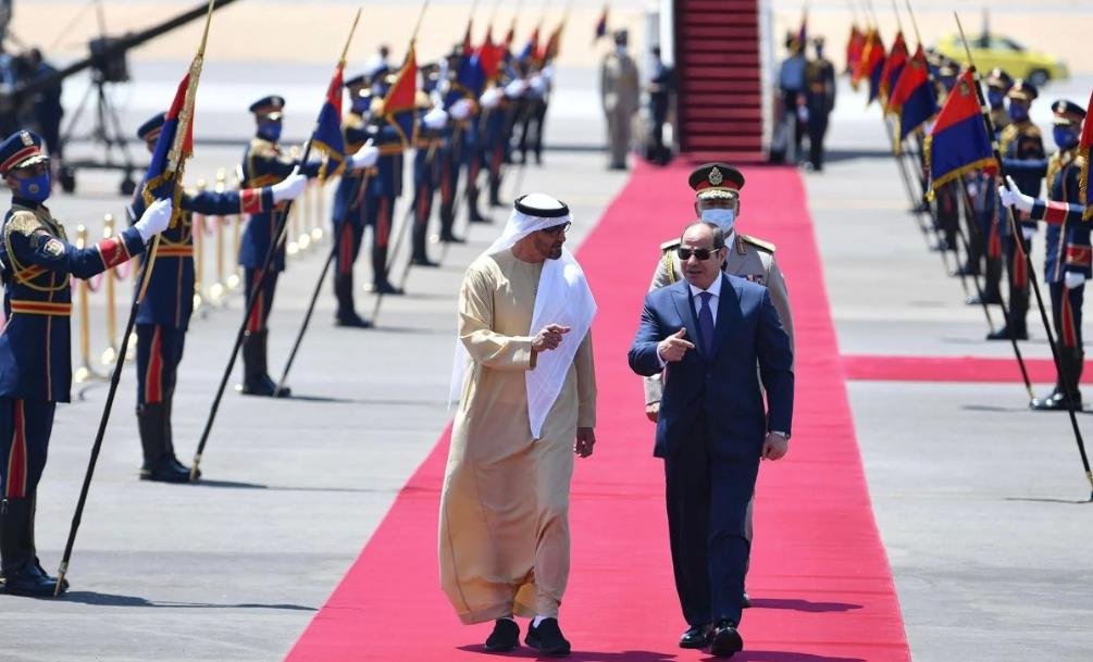 واستقبل الرئيس المصري بعد ظهر اليوم بمطار العلمين الشيخ محمد بن زايد آل نهيان "الذي يحل ضيفاً على مصر" ، وفقاً للمتحدث الرسمي باسم الرئاسة المصرية بسام راضي.