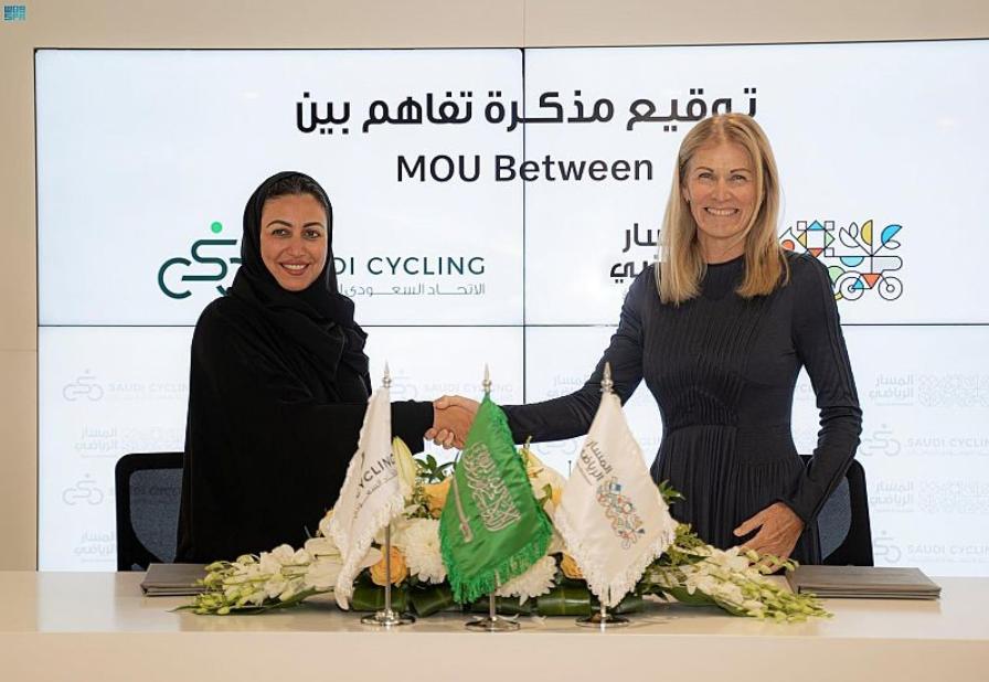 ومثل الجانبان خلال التوقيع الرئيسة التنفيذية لمؤسسة المسار الرياضي جين ماكجيفرن، ونائبة رئيس الاتحاد السعودي للدراجات أسماء الجاسر .