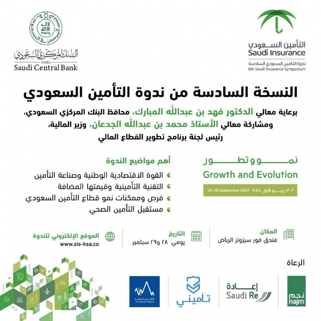 تنطلق صباح يوم غدٍ (الأربعاء) في الرياض فعاليات ندوة التأمين السعودي في نسختها السادسة، برعاية معالي الدكتور فهد بن عبدالله المبارك، محافظ البنك المركزي السعودي، تحت شعار "نمو وتطور"، بهدف تسليط الضوء على الدور الذي يقدمه قطاع التأمين في الاقتصاد الوطني.