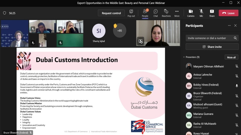 ويأتي هذا الاجتماع في إطار حرص جمارك دبي على التواصل الدائم مع الشركاء في الهيئات الدبلوماسية والتجارية الاجنبية والعمل على تعزيز التعاون المشترك معهم، حيث شارك في الاجتماع من جمارك دبي مريم المهيري مدير قسم العلاقات الخارجية وخلود الحوسني ضابط قسم التوعية والتثقيف، ومن الجانب الامريكي بروس إلسورث ضابط الملحق الرقمي والعديد من الشركات التابعة للملحق التجاري في السفارة والتي تتطلع الى التوسع بالتجارة في أسواق دبي.