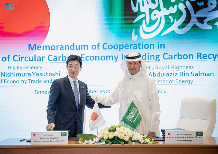و رحب الجانبان، بالتمديد الجديد للتعاون في مجال التخزين الإستراتيجي، بين وزارة الاقتصاد والتجارة والصناعة في اليابان وشركة أرامكو السعودية، لمدة ثلاث سنوات، مشيدين بتوقيع مذكرتي تعاون في كل من مجال الاقتصاد الدائري للكربون، وإعادة تدوير الكربون، وفي مجال الهيدروجين النظيف، ووقود الأمونيا ومشتقاتها.