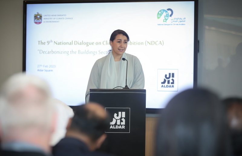 وأكدت معالي مريم بنت محمد المهيري، وزيرة التغير المناخي والبيئة، في كلمتها التي افتتحت بها الحوار الوطني أن قطاع البناء والتشييد يساهم بشكل كبير في بصمتنا الكربونية الوطنية، ويشكل هذا القطاع 40% من انبعاثات غازات الدفيئة سنوياً على المستوى العالمي والذي يعتبر من أكثر القطاعات التي تنتج هذه الانبعاثات للاعتماد الكبير على الخرسانة التي تعد واحدة من أكثر المواد استخداماً على المستوى العالم. مضيفةً أنه يجب العمل الآن للحد من تأثير هذا القطاع على البيئة إذ أن الحد من انبعاثات الكربون له تأثير كبير على التغير المناخ وتخفيف حدته.