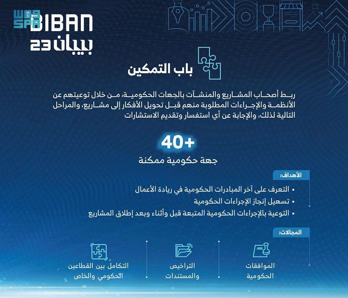 ويُشكّل "بيبان الرياض 2023" نموذجاً اقتصادياً منفتحاً على العالم، يعزز مكانة المملكة كمركز عالمي لريادة الأعمال، ووجهة دولية رائدة للمنشآت الصغيرة والمتوسطة، في ظل حكومة رشيدة تستشرف باستمرار احتياجات السوق وتستجيب سريعاً لمتطلباته.