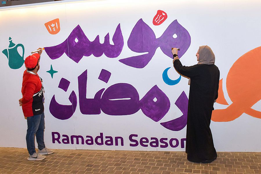 وتزينت الجداريات بأحرف وزخرفات وحركات تشكيل فن الخط العربي، كتب عليها "موسم رمضان "باللغة العربية بـ "الخط الديواني"، بالإضافة إلى مجموعة من الرسومات التراثية والثقافية التي تترجم جوهر التاريخ العريق لجدة التاريخية، تفاعل معها الزوار بالمشاركة في الرسم والتلوين لإكمال الجدارية التي تعكس الفن البصري الإبداعي والتراث الثقافي لجدة التاريخية، لتكتمل الجدارية بتكاتف الجهود وتتحول إلى قطعة فنية جمالية .