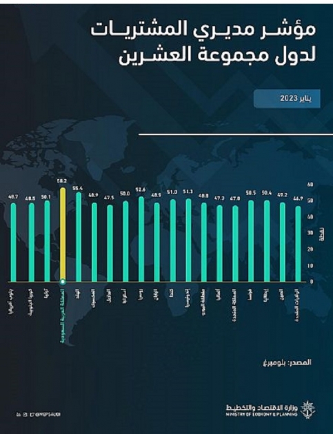 تجدر الإشارة إلى أن الأداء المتميز في مؤشر مديري المشتريات يأتي بعد تفوق المملكة العربية السعودية عالميًا في نمو الناتج المحلي الإجمالي لعام 2022م، مما يعكس استمرار مسيرة النمو والتنمية خلال العام الحالي.