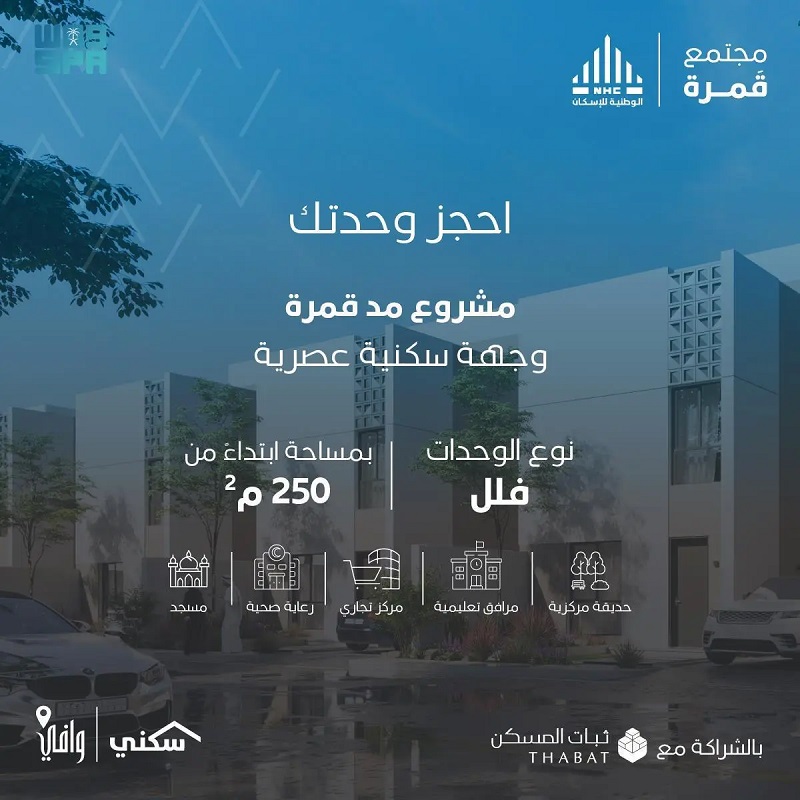 أطلقت الشركة الوطنية للإسكان "NHC" مشروع مد قمرة، أحد مشاريع مجتمع قمرة في محافظة القطيف، وذلك ضمن الجهود المبذولة بالشراكة مع القطاع الخاص لضخ المزيد من المشاريع السكنية ذات التطوير الشامل في المنطقة الشرقية.
