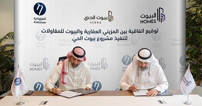 وقعت شركة المزيني العقارية مع شركة البيوت للمقاولات اتفاقية لتنفيذ وبناء مشروع "بيوت الحي" الواقع بحي سدرة بمدينة الرياض، والذي يتضمن 493 وحدة سكنية، حيث تعتزم الشركة إطلاقه خلال الشهر الجاري.