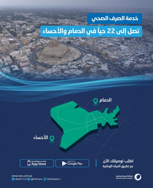 وأكدت الشركة مضيها قدمًا في تنفيذ مثل هذه المشاريع في مناطق المملكة المختلفة لتغطيتها بالشبكات المائية والبيئية، لتحقيق استراتيجيتها، والاتقاء بجودة حياة السكان، داعية السكان الكرام في 22 حيًا بالدمام والأحساء التقديم بطلب الخدمة من خلال قنوات الشركة الرقمية، الإلكتروني (e.nwc.com.sa) أو تطبيقها الإلكتروني على الهواتف الذكية.