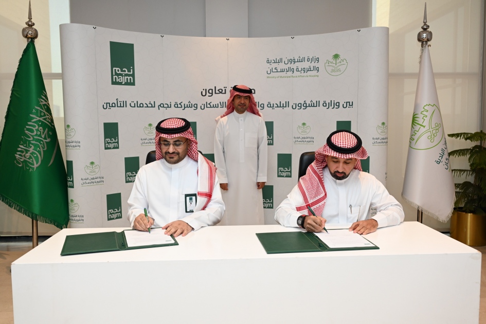 وقعت وزارة الشؤون البلدية والقروية والإسكان اليوم، مذكرة تفاهم مع شركة "نجم" لخدمات التأمين، لتطوير ودعم المبادرات التي تدعم تطوير أداء الطرق، والتعاون في الحملات التوعوية لتفادي الحوادث المرورية. وذلك برعاية معالي وزير الشؤون البلدية والقروية والإسكان الأستاذ ماجد بن عبدالله الحقيل، وحضور عدد من المسؤولين من كلا الجانبين.