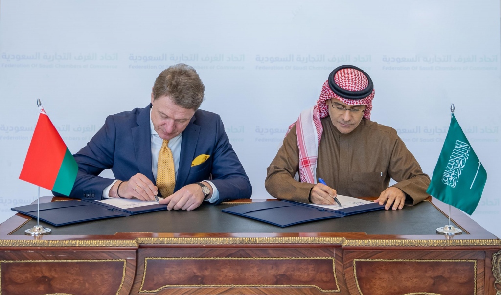وقع اتحاد الغرف السعودية و"المركز الوطني للتسويق ودراسة الأسعار" التابع لوزارة الخارجية في جمهورية بيلاروسيا مذكرة تفاهم لتعزيز الاستثمار والتجارة بين المملكة وبيلاروسيا.