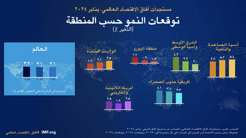 توقع صندوق النقد الدولي نمو اقتصادات الشرق الأوسط وآسيا الوسطى بنسبة 2.9% في 2024، ترتفع إلى 4.2% في 2025.