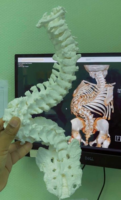 وقال الاستشاري مجدي هاشم شارحًا مراحل العلاج: " فور وصول الطفل، تم عمل الفحوصات اللازمة وبناء على ذلك تم وضع الخطه العلاجيه وتقسيمها على مرحلتين، حفاظا على سلامة الحبل الشوكي وللحصول على أكبر نسبة تعديل للتقوس دون مضاعفات، وتم طباعة مجسم للعمود الفقري ثلاثي الأبعاد يحاكي التشوه لدى الطفل، لدراسة الحالةبدقة، قبل وأثناء العمل الجراحي ".