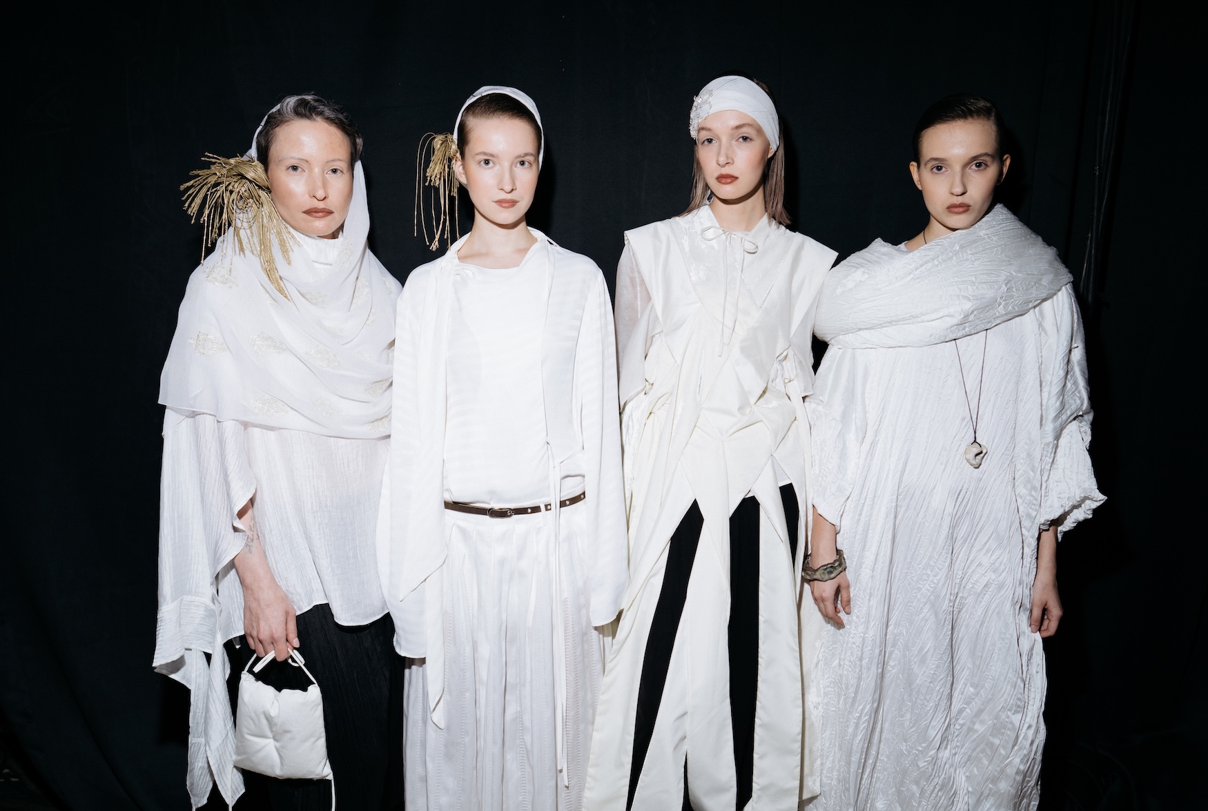 من جانبها، نقلت ASLP Dagestan الجمهور إلى المناظر الطبيعية النابضة بالحياة في جمهورية داغستان، من خلال عرض أزياء تخللته رقصات تقليدية مفعمة بالحيوية. قدمت المجموعة الأزياء التقليدية بأسلوب عصري، حيث مزجت بين الجرأة والتجريب مع الحفاظ على الجوهر الثقافي للمنطقة. تميزت المعاطف التقليدية بتطبيقات ثلاثية الأبعاد، وزُينت الكابات بالترتر، بينما جاءت الفساتين المرقعة بأنماط وطنية وشراشيب مستوحاة من التراث.
