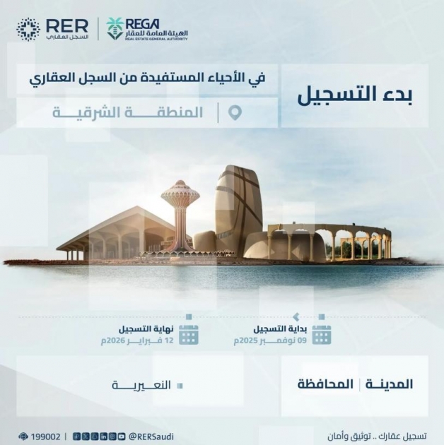 ويجب على ملاك العقارات الواقعة في نطاق الأحياء تسجيل عقارتهم قبل نهاية يوم الخميس 12 فبراير 2026م، ويمكن التحقق من موقع العقار إذا كان ضمن المناطق المعلنة من خلال منصة السجل العقاري.