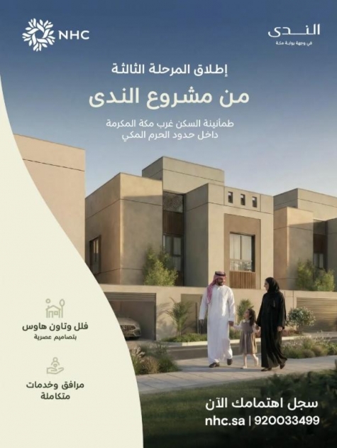 أعلنت NHC إطلاق المرحلة الثالثة من مشروع الندى، الذي يعد أحد المشاريع النموذجية ضمن وجهة "بوابة مكة العمرانية" في العاصمة المقدسة؛ مما يعكس دور NHC في تطوير وجهات عمرانية متكاملة تلبي تطلعات العملاء كافة.