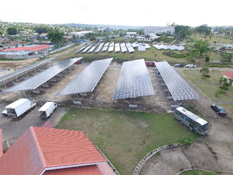 ويشتمل مشروع الطاقة الشمسية الكهروضوئية في جمهورية فانواتو على تركيب أنظمة أرضية وأخرى في موقف السيارات ضمن مبنى البرلمان بطاقة إنتاجية تبلغ 644 كيلوواط في وقت الذروة، وأنظمة أرضية بطاقة 123 كيلوواط في وقت الذروة في مبنى إدارة الأرصاد الجوية والأخطار الجيولوجية.