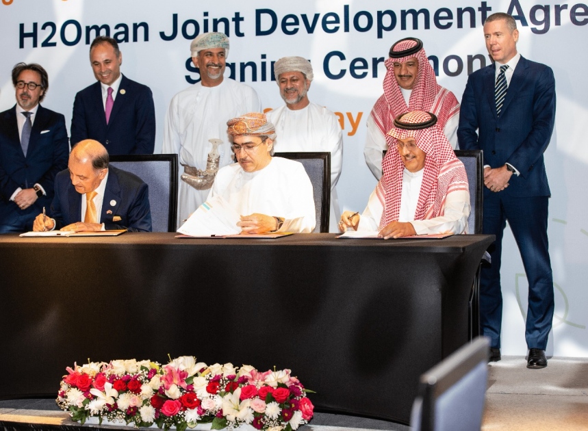 وقعت كل من أكوا باور السعودية ومجموعة أوكيو و إير برودكتس الأمريكية (اليوم) الخميس 26 مايو 2022م في مسقط، على اتفاقية التطوير المشترك لمشروع هيدروجين عمان وذلك لإنشاء محطة لإنتاج الأمونيا باستخدام الهيدروجين الأخضر في سلطنة عُمان؛ اعتماداً على مصادر الطاقة المتجددة في السلطنة.