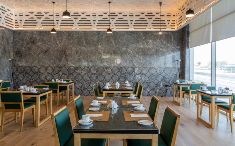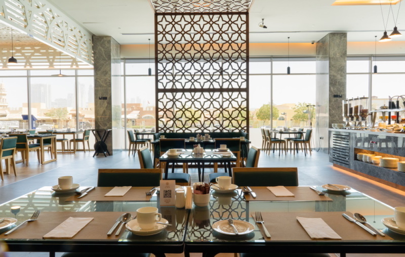 يقدم مطعم الباحة النابض بالحياة والمستوحى من تراث وثقافة بلاد الشام للضيوف تجربة شامية أصيلة من خلال تقديم تشكيلة متنوعة من المقبلات الساخنة والباردة المشاوي والمناقيش ومجموعة أطباق لذيذة من الحلويات الشعبية المصنوعة محلياً.