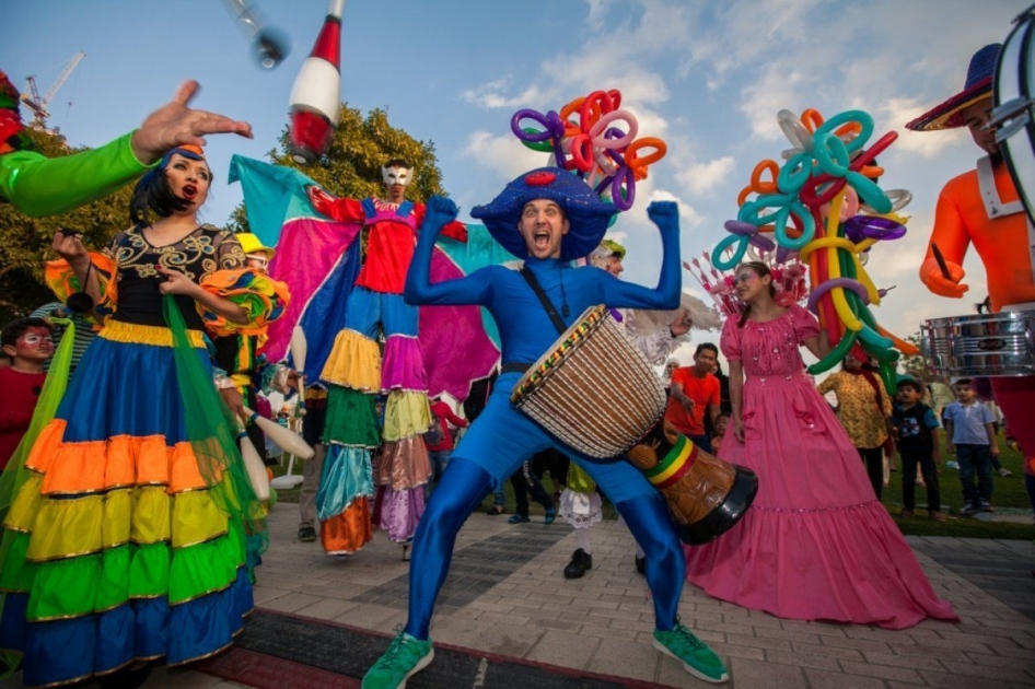 وتوّفر "واجهة المجاز المائية" الفرصة للزوار للتفاعل مع موكب الفرقة المتجولة، من خلال مرافقتهم أثناء التنزه في ممراتها، فضلاً عن فرصة التقاط مجموعة من الصور التذكارية، حيث يتخلل الموكب مجموعة من عروض السيرك والألعاب البهلوانية الممتعة، منها عرض التوازن على الكراسي، الذي يقدم مرتين كل مساء طوال أيام العيد، وعرض حركات التوازن على اليدين في تحدٍ مثير لقوى الجاذبية، بالإضافة إلى عرض الرقص مع النار الذي يُقام مرتين كل مساء ويمزج بين الرقصات والحركات البهلوانية ومشاعل النار المثيرة.