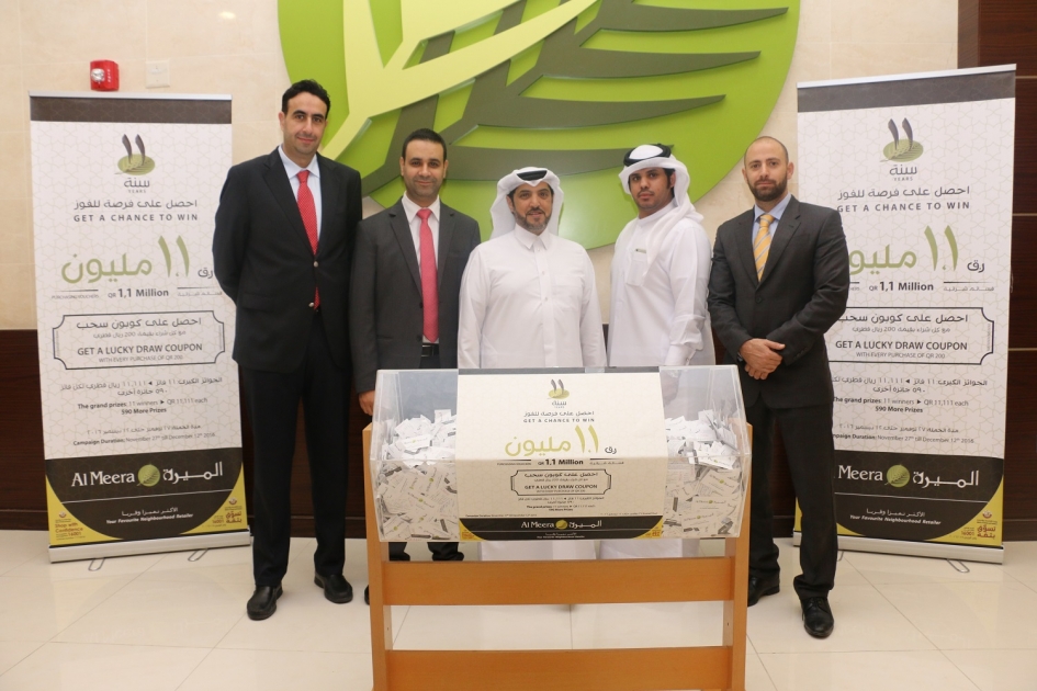 إلى جانب 11 فائزاً بجائزة 11,111 ريال قطري لكل منهم، يوجد 590 جائزة أخرى في متاجر الميرة بانتظار العملاء بمناسبة احتفالات الذكرى السنوية الحادية عشرة. سيحصل العملاء، الذين يتسوقون في متاجر الميرة الأربعين  المتواجدة في أنحاء قطر، على قسيمة سحب واحدة لكل 200 ريال قطري ينفقونها، ويمكن للعملاء استخدام تلك القسائم للمشاركة في السحب للفوز بقسائم تسوق بقيمة إجمالية 1,1 مليون ريال قطري. ستُقبل القسائم للمشاركة في السحب حتى 12 ديسمبر وسيتم الإعلان عن أسماء الفائزين الـ 301 في 13 ديسمبر في مركز تسوق الميرة فرع بو سدرة في الساعة 11 صباحاً.