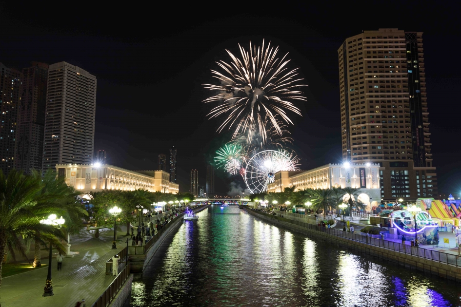 احتفالاً برأس السنة الميلادية، وسعياً منها إلى بث أجواء الفرح والبهجة بين سكان وزوار إمارة الشارقة على مدار العام، تزينت سماء القصباء، الوجهة السياحية والترفيهية العائلية الأبرز في إمارة الشارقة، ليلة أمس (الأحد)، بالألعاب النارية المضيئة التي عكست جمال ألوانها على مرافق ومباني المدينة مودعةً بذلك عام 2017.