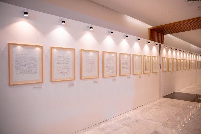ويضم المعرض أكثر من 80 مخطوطة وصفحة ملهمة على رأسها صفحة مكتوبة بخط يد صاحب السمو