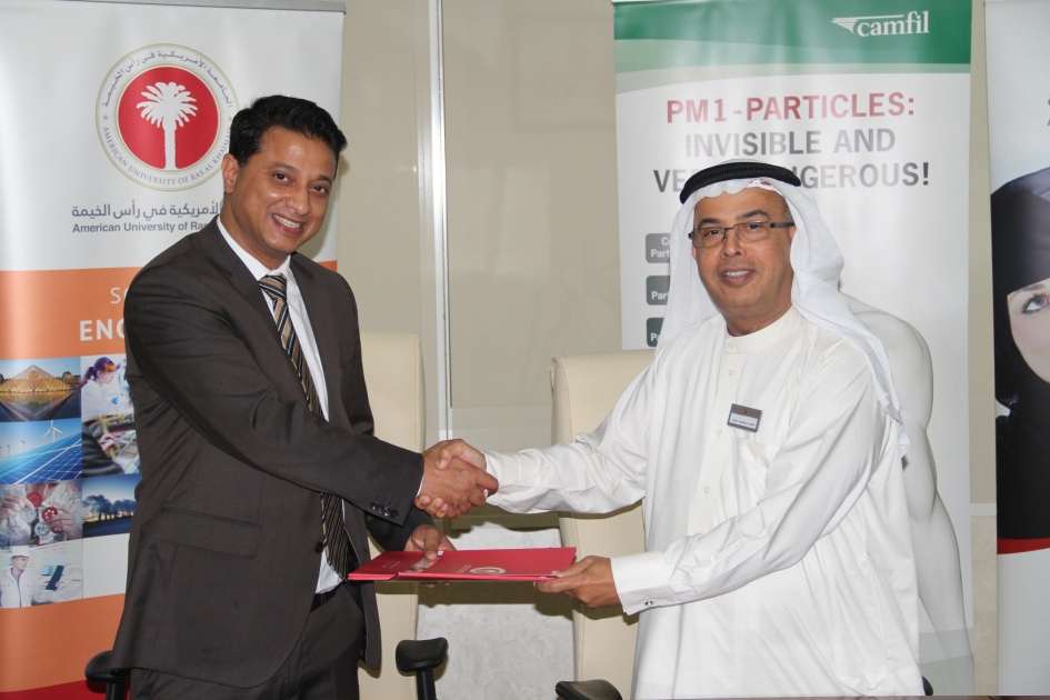 وقعت الجامعة الأمريكية في رأس الخيمة اليوم مذكرة تفاهم مع شركة كامفيل، الرائدة عالميا في مجال تنقية الهواء تهدف الى الاستفادة من خدماتها البيئية في مرافق الجامعة والبحوث وتدريب الطلاب .