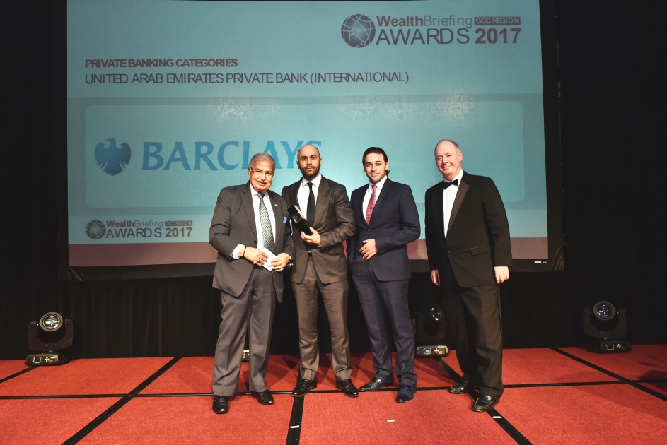فاز بنك "باركليز" بجائزة "أفضل بنك خاص" ضمن اثنتين من فئات حفل توزيع جوائز "ويلث بريفينج" (WealthBriefing) لمنطقة الخليج العربي لعام 2017، ويؤكد هـذا الإنجاز على التزام البنك المتواصل بتقديم أفضل الخدمات المصرفية الخاصة في القطاع المصرفي الإقليمي والدولي. وحصل البنك خلال الحفل على جائزة "أفضل بنك خاص" على مستوى دولة الإمارات ضمن فئة المؤسسات الدولية، بالإضافة إلى جائزة "أفضل بنك خاص" في المنطقة ضمن فئة منصات إدارة الاستثمارات.