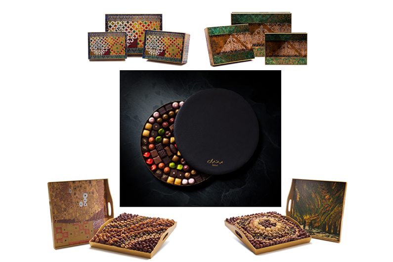 يستطيع الزوار الاختيار بين الصناديق المزخرفة ولفها بشريط جميل على شكل عقدة مميزة وأن يملأوها بتشكيلة الشوكولاتة أو التمور المغلفة بالشيكولاتة الفاخرة التي تقدمها بيتل.