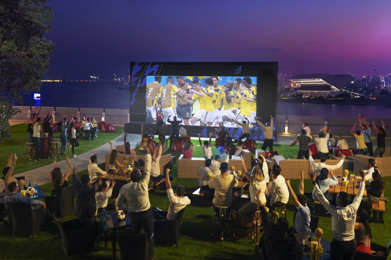 وإلى جانب الدخول المجاني للجميع، يمكن لعشاق كرة القدم ومشجعيها من جميع الأعمار مشاهدة جميع المباريات التي يتم بثها مباشرة من قطر على شاشات ضخمةذات دقة عالية في مكانين هما بلجيان كافيه أو التراس الخارجي الواسع في فندق كراون بلازا دبي فيستيفال سيتي الذي يتميز بإطلالات مذهلة على الخور وأفق مدينة دبي. كما سيتم توفير منطقة مخصصة للمجموعات لإضفاء أجواء تناسب كل مباراة على حدة.