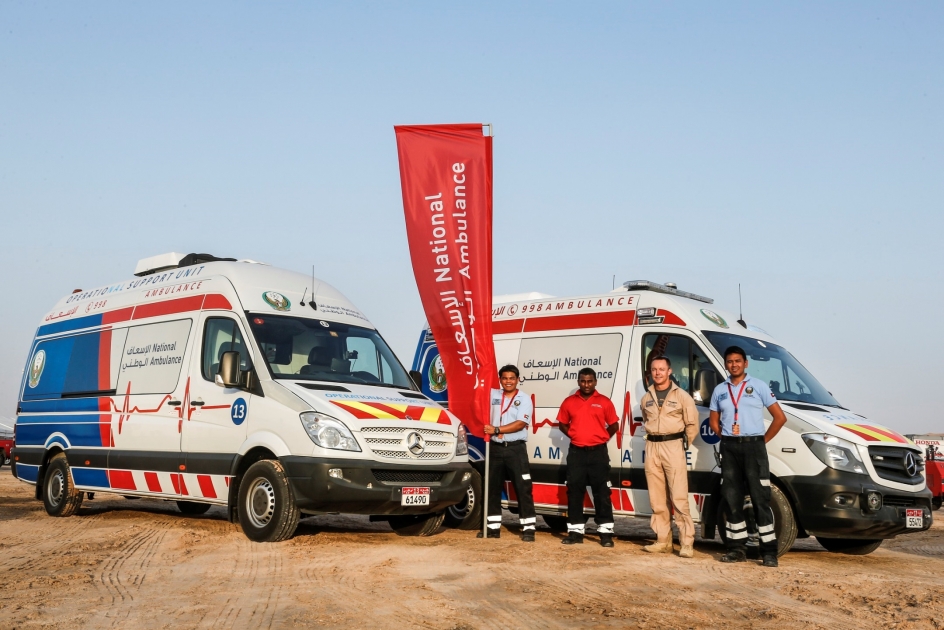 ويعتبر الاجهاد و’الجفاف‘ الذي يسببه نقص مستوى المياه في الجسم، من أكثر المخاطر التي تواجه المشاركين في الرالي الذي يقام في منطقة الربع الخالي، حيث أن أكثر من 10% من المشاركين سيحتاجون إلى نوع من العناية الطبية. وبتحقيق زمن إجابة يتراوح بين 10 و12 دقيقة، يعتبر رالي أبوظبي الصحراوي واحدا من أسرع الفعاليات من حيث التعامل مع الحالات الطارئة في أي من بطولتي كأس العالم للراليات الطويلة للسيارات ’فيا‘ والدرجات النارية ’فيم‘.
