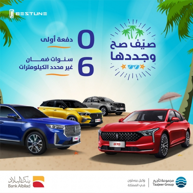 ضمن الأنشطة التسويقية التي تطلقها بشكل مستمر دعماً وتشجيعاً لعملائها، أعلنت مجموعة تأجير الوكيل الحصري لسيارات بيستون في المملكة العربية السعودية، عن إطلاق حملتها التمويلية الجذابة لصيف 2022، يحصل بموجبها عملاء بيستون على حلول تمويلية ميسرة من بنك البلاد للحصول على السيارة المفضلة لديهم، ضمن المجموعة الكاملة من طرازات بيستون.