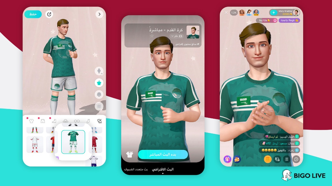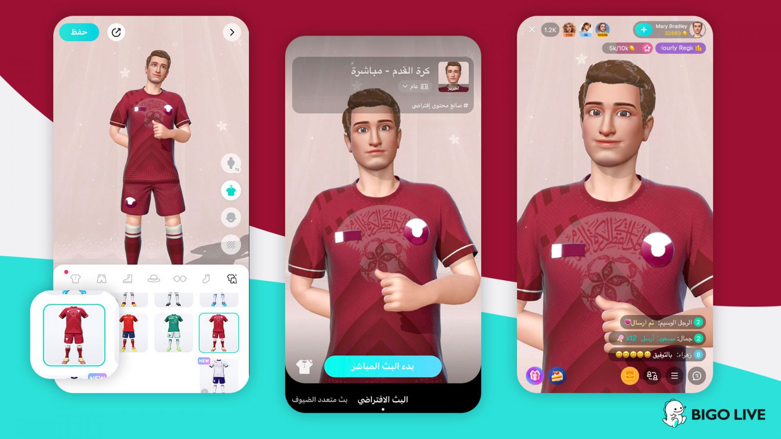 في إطار ميزة "فيرتشوال لايف" "Virtual Live"  المتاحة على المنصة، أضافت "بيجو لايف"  Bigo Liveملابس رياضية جديدة خاصة بشخصيات الأفاتار الافتراضية، ومن ضمنها قمصان كرة القدم من الإمارات العربية المتحدة والمملكة العربية السعودية والمغرب وقطر. ومن خلال الإصدار الأحدث من نوعه للمنصة، بإمكان المستخدمين اختيار شخصيات الأفاتار ثلاثية الأبعاد الخاصة بهم من تشكيلة الأزياء المتوفرة، إلى جانب خلفيتين جديدتين حصريتين لكرة القدم لاستخدامها أثناء البث المباشر من أجل تقديم تجربة متابعة أكثر جاذبية لمشجعي كرة القدم حول العالم.
