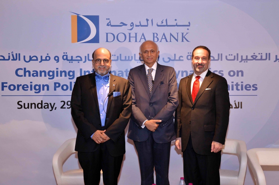 استضاف بنك الدوحة جلسة لتبادل المعرفة حول "الديناميكيات الدولية المتغيرة في السياسات الخارجية والفرص المتاحة" بتاريخ 29 يناير 2017 بقاعة الاجتماعات في برج بنك الدوحة. وقد شرف الندوة بالحضور معالي السيد/ رانجان ماثاي، وزير الخارجية الهندي السابق والمفوض السامي الهندي إلى المملكة المتحدة كضيف شرف، والدكتور/ مهران كامرافا، مدير مركز الدراسات الدولية والإقليمية بجامعة جورج تاون متحدثاً خلال الجلسة، بالإضافة إلى حضور عدد من الدبلوماسيين وكبار المسؤولين من كبرى الشركات في قطر.