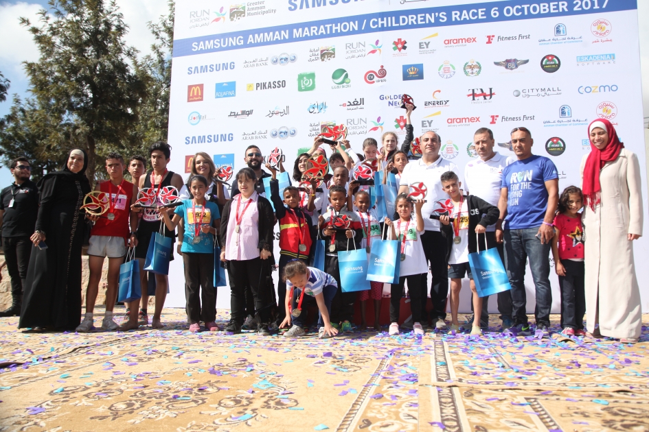 وفي نهاية السباق، توّج أمين عمان معالي الدكتور يوسف الشواربة الفائزين بحضور مندوب شركة سامسونج الكترونيكس المشرق العربي، السيد رامي جرار، ومدير عام الجمعية الأردنية للماراثونات الآنسة لينا الكرد، والأطفال وذويهم. وقدم الكؤوس للفائزين، كما قدم مندوب شركة سامسونج  الجوائز العينية المقدمة من سامسونج، حيث تم تقسيم الفئات المشاركة إلى ثلاث فئات ضمت الأولى الأطفال من عمر 6 إلى 8 سنوات، والثانية من 9 إلى 11 سنة، والثالثة من 12 إلى 14 سنة.