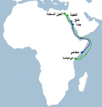سيتم إضافة زيارتين أسبوعيتين لمينائي العقبة والعين السخنة إلى المسار ، مما يوفر وقت عبور تنافسي بين جمهورية مصر والمملكة الأردنية ومقديشو ومومباسا ، بالإضافة إلى عرض أوسع للسوق الداخلي لمنطقة البحر الأحمر.