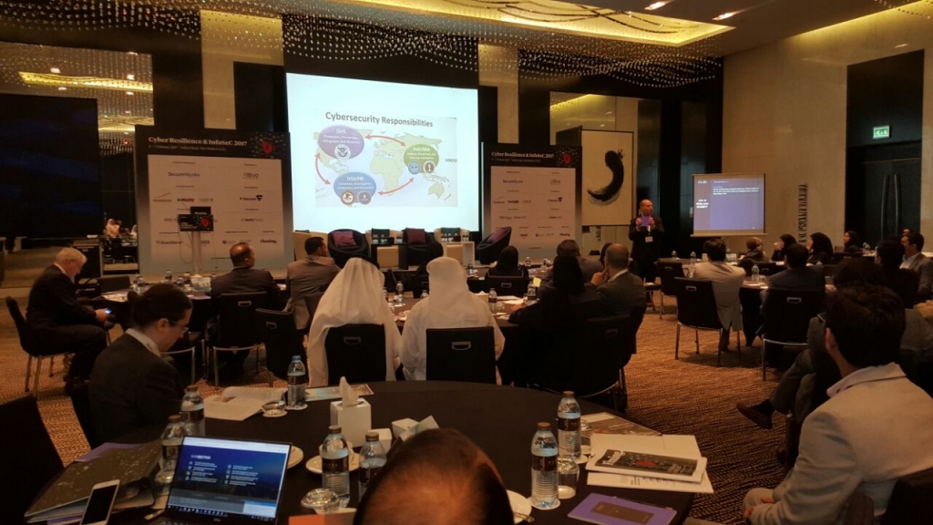 وتضمن الحدث أيضا حلقتي نقاش رئيسيتان عن وضع الأمن الإلكتروني في قلب ‘الشركة الذكية’، وكيف تحتاج الشركات لتحويل عقلية الأمن وإعادة النظر في الأمن الإلكتروني لضمان تبنى تكنولوجيا فعالة، تعليمية وتوعوية للتغلب على نقاط الضعف الحرجة الحالية والمستقبلية. وشارك في هذه المناقشات ممثلين من هيئة الإمارات للاستثمار، تكرير، مجموعة اوبجكت الادارية، مطارات دبي وطيران الاتحاد. وتطرق متحدثين بارزين من حكومة دبي الذكية، جنرال الكتريك، كليفلاند كلينك، والبنك الأهلي المصري وجامعة خليفة وبنك أبوظبي الوطني الى عدة مواضيع اهمها تطور الحكومة الإلكترونية والبنية التحتية الآمنة للحكومة الإلكترونية الذكية.