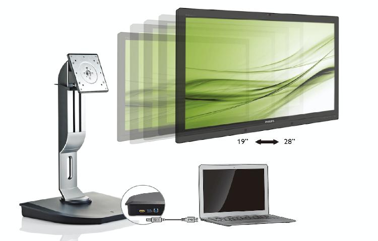 إن المنتج الجديد حامل شاشات الكمبيوتر (فيليبس SB4B1928UB USB Docking) يجمع صفات حامل الشاشة الأنيق و المريح و يمكن للمستخدمين الإستفادة من الحامل مع أي من شاشات « فيليبس » الجديدة أو أي شاشة كمبيوتر أخرى يمتلكونها و التي تتوافق مع معايير (VESA) . و يتوافق مع الحامل شاشات بحجم 19 حتى 28 بوصة (48 سم حتى 71 سم), إن الحامل الجديد (docking) يتيح للمستخدمين مرونة أكبر لإختيار (و مبادلة) شاشة العرض الكمبيوتري.