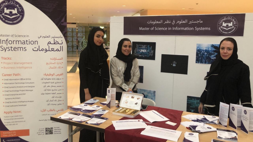 وتجاوز عدد الطالبات الراغبات في التعرف على برامجالبكالوريوس 50 طالبة بينما تجاوز عدد الراغبات في الحصول على معلومات حول الماجستير أكثر من 70 طالبة حيث تقدم الجامعة مجموعة متنوعة من برامج الماجستير للطالبات، كما أنها فتحت أبواب القبول في برامج الماجستير للرجال كذلك.