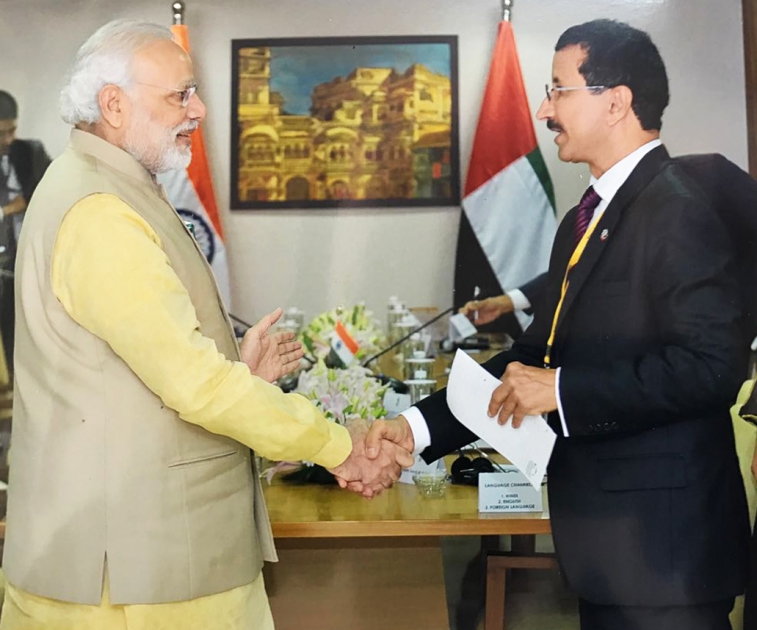 ويربط بين الهند ودولة الإمارات العربية المتحدة علاقات تاريخية وتجارية راسخة إذ بلغ حجم التبادل التجاري بينهما 60 مليار دولار أمريكي في عام 2015.