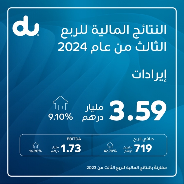 أعلنت شركة الإمارات للاتصالات المتكاملة ش.م.ع (دو)، اليوم عن نتائجها المالية للربع الثالث من العام 2024 حيث سجلت نمواً استثنائياً في الإيرادات بنسبة بلغت 9.1%، ونمواً قوياً في الأرباح قبل اقتطاع الفوائد والضرائب والإهلاك والاستهلاك بنسبة 16.9%، محققةً مستوى قياسياً في هامش أرباحها قبل اقتطاع الفوائد والضرائب والإهلاك والاستهلاك بواقع 48.3%، وهو الهامش الأعلى الذي تسجله الشركة منذ تأسيسها. وبلغ صافي الربح في الربع الثالث 719 مليون درهم، وهو ما يمثّل أعلى صافي ربح ربع سنوي تحققه الشركة في السنوات الثلاث الماضية، بينما سجل صافي أرباح الشركة خلال الأشهر التسعة الأولى من العام 2024 نمواً لافتاً بنسبة بلغت 49.7%. ويعود هذا الأداء المالي القوي للغاية إلى عوامل عدة بما في ذلك استمرار الزخم التجاري القوي لعمليات الشركة، والتنفيذ الدقيق والمتسق لاستراتيجية أعمالها، فضلاً عن الإدارة الفعّالة للتكاليف. وقد تمكّنت الشركة من تحقيق إنجازات مهمة ولافتة في مجال خدمات الاتصال الأساسية وغيرها من المجالات الأخرى التي تنشط فيها، بما يدعم رؤيتها واستراتيجيتها للتحول من مشغل لخدمات الاتصال إلى شركة رائدة في مجال الاتصالات والخدمات الرقمية.