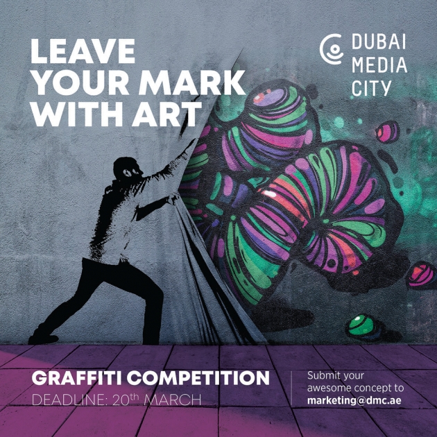 أعلنت مدينة دبي للإعلام، المجمع الإعلامي المتكامل في منطقة الشرق الأوسط، عن إطلاق مسابقة جديدة للفنانين الطموحين بهدف رعاية المواهب المحلية والإقليمية ودعم الحركة الفنية في المنطقة. وتدعو مسابقة "لوحة مدينة دبي للإعلام" الفنانين والمصممين وجميع الموهوبين إلى تسخير إمكاناتهم الإبداعية في فنون ورسومات الجرافيتي وإضفاء لمساتهم الإبداعية في إحدى مناطق مدينة دبي للإعلام.