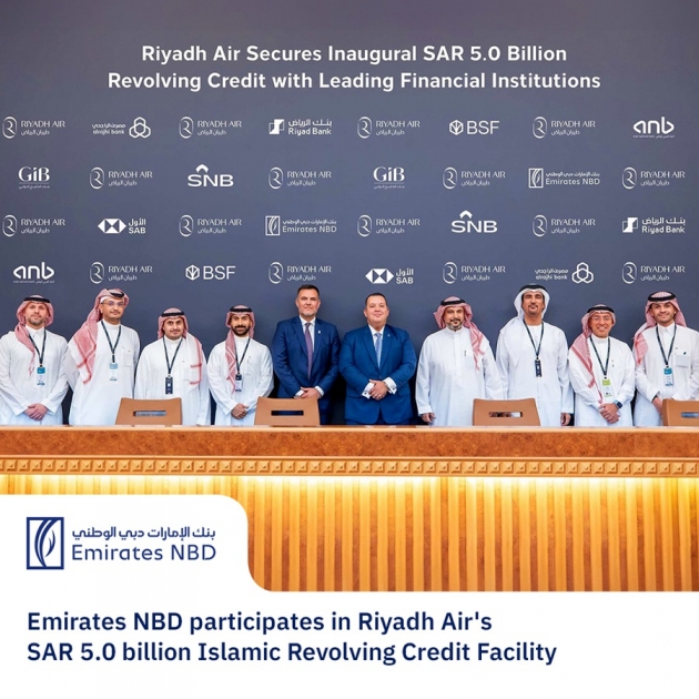 أعلن بنك الإمارات دبي الوطني، أحد أبرز المؤسسات المصرفية في منطقة الشرق الأوسط وشمال أفريقيا وتركيا (MENAT)، عن مشاركته في تمويل تسهيل ائتماني بقيمة 5 مليارات ريال سعودي لشركة "طيران الرياض"، الناقل الوطني الجديد المملوك بالكامل لصندوق الاستثمارات العامة السعودي.