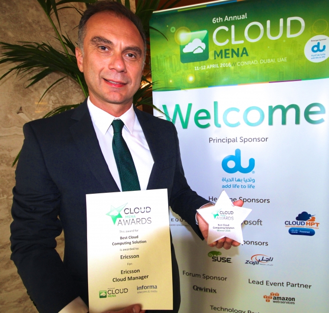 منحت اريكسون جائزة " أفضل حلول للحوسبة السحابية " خلال حفل توزيع الحوسبة السحابية بالشرق الأوسط 2016، الذي عقد في فندق كونراد دبي يوم 11 أبريل 2016.