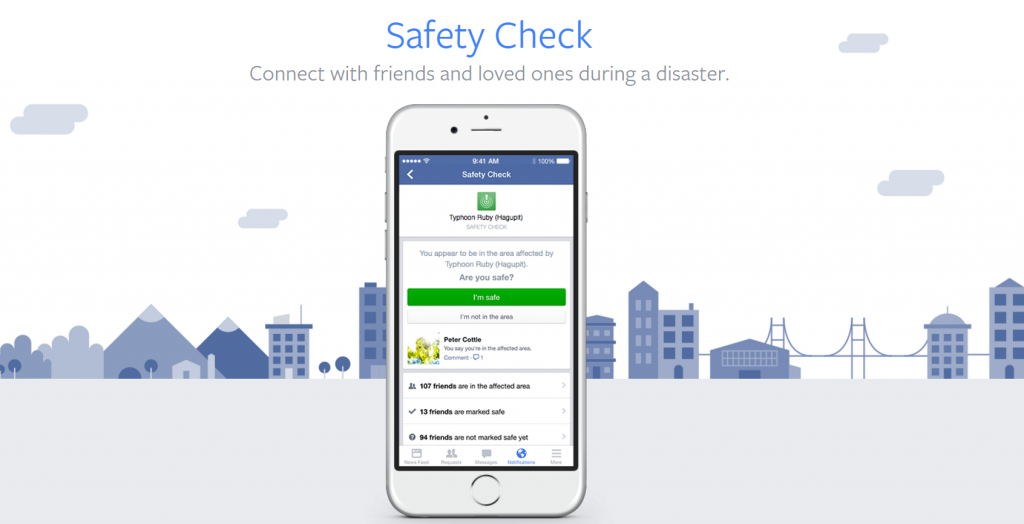 يثبت لنا فيسبوك كل يوم مدى أهمية التواصل التي تبرز خصوصاً عندما يكون المستخدمون بأمس الحاجة إليها. وتكرس الشركة باستمرار موارد لابتكار أدوات لا يقتصر دورها على إتاحة إمكانية مشاركة القصص ولكن تساعد الآخرين عند وقوع أي حدث طارىء. لذلك قام فيسبوك بتفعيل ميزة التحقق من السلامة، وهي ميزة تتيح للمستخدمين إمكانية طمأنة ذويهم أنهم بخير عند وقوع أزمة.