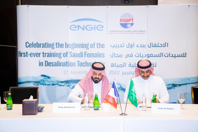 بحضور خالد القرشي الرئيس التنفيذي للشركة السعودية لشراكات المياه، وغانم الغانم مدير عام صندوق تنمية الموارد البشرية (هدف)، وقع تركي الشهري المدير التنفيذي لشركة إنجي في السعودية وطارق الشمراني الرئيس التنفيذي للمعهد العالي لتكنولوجيا المياه والكهرباء، الاتفاقية في حفل أقيم في فندق فيرمونت بالرياض