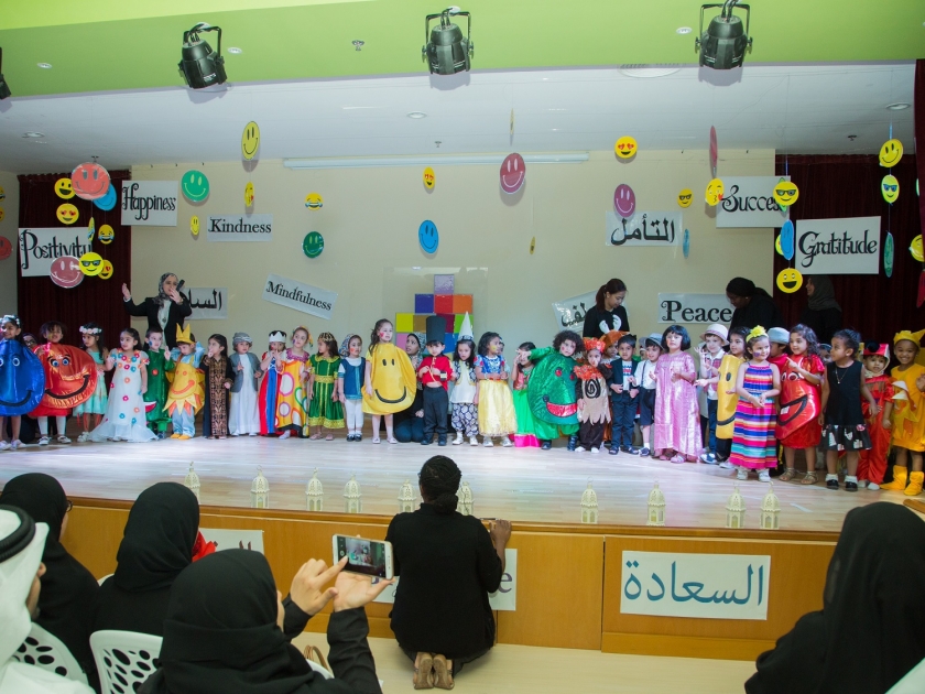 تماشياً مع إطلاق مجلس السعادة العالمي في دولة الإمارات العربية المتحدة، وتزامناً مع مبادرة عام الخير التي أطلقها صاحب السمو الشيخ خليفة بن زايد آل نهيان، نعمل على تبني مفاهيم السعادة وتعزيزها، كالمشاركة، والاحترام والإيجابية بين أفراد المجتمع. وإيماناً من الحضانة بأهمية ترسيخ مفاهيم السعادة والإيجابية والتي تعتبر حجر الأساس للمنهاج المتبع في الحضانة فقد تم تنظيم الحفل السنوي تحت عنوان "انشر السعادة حولك". وابتسم دائماً.